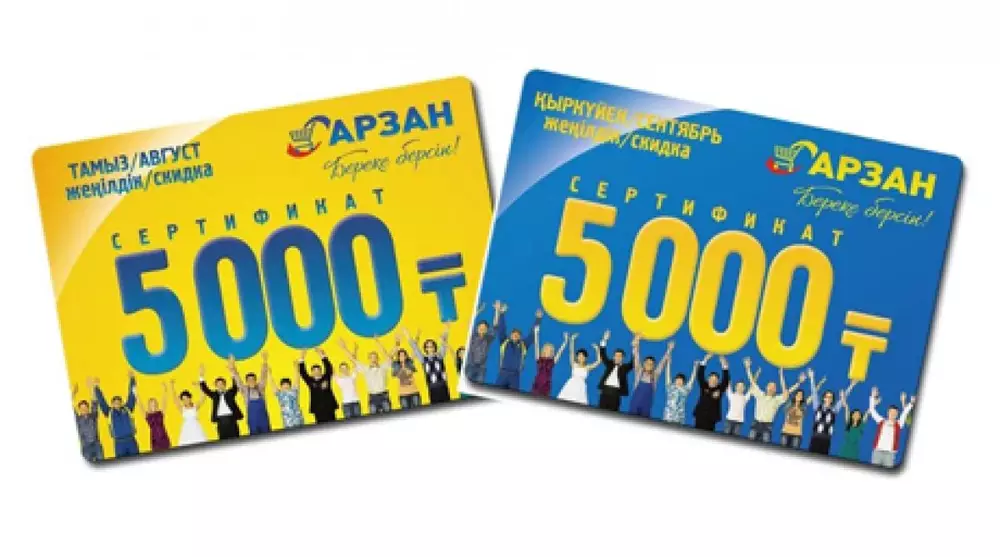 В честь открытия супермаркета "Арзан" на Райымбека, угол улицы Яссауи, 18 и 19 августа пройдет грандиозная акция в поддержку новой концепции сети "Береке берсiн". В эти дни "Арзан" позволит каждому покупателю не только закупиться по самым доступным ценам, но и получить за это ценный подарок - пару скидочных сертификатов на общую сумму 10 000 тенге. Для этого необходимо 18 или 19 августа прийти в магазин "Арзан" на Райымбека, совершить покупку на сумму от 10 000 тенге и обменять чек на Сертификаты, которые можно использовать при оплате товаров в алматинских магазинах сети "Арзан". Береке берсiн!