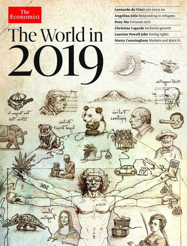 Другую расшифровку обложки журнала The Economist на 2019 год провели эксперты из Института научных исследований третьего тысячелетия Илья и Юрий Белоусы. Прочитать ее можно здесь.