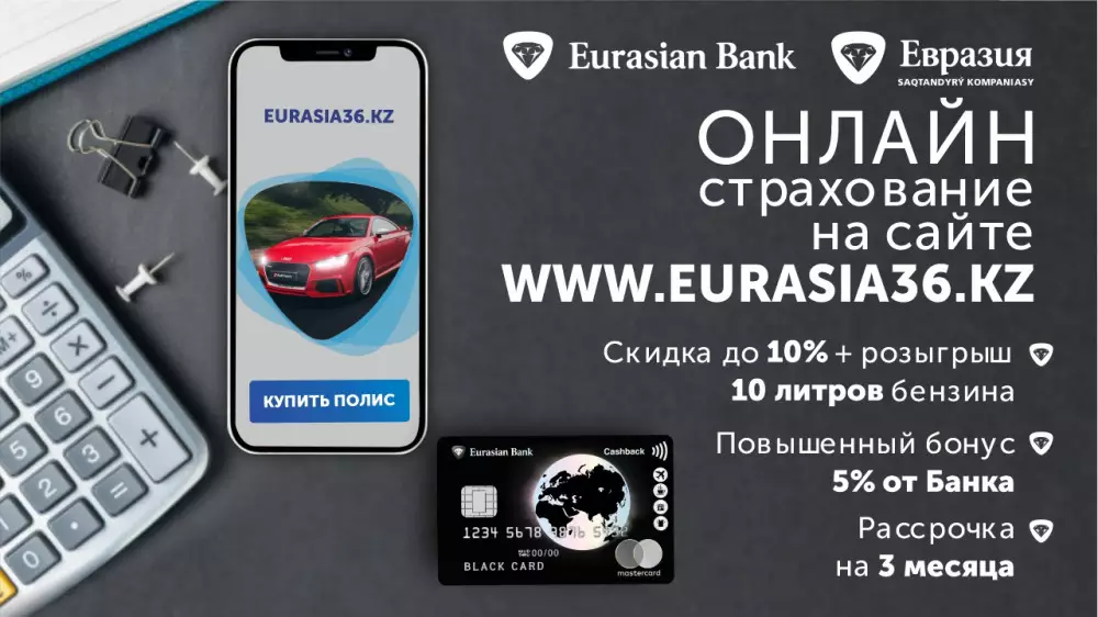 "Идея сделать приятный комплимент гражданам, являющимся одновременно клиентами Евразийского банка и СК "Евразия", вдохновила нас на совместную акцию. Как известно, на сайте EURASIA36.kz можно за 3 минуты купить полис, внести изменения или пролонгировать действующий полис, а сам процесс очень простой: вносить нужно минимум данных и получить полис на WhatsApp в любое время. Особенно это актуально сейчас, никуда ехать не нужно, можно сэкономить время и деньги, получить ликвидные подарки в виде выигрышей", – рассказал заместитель председателя правления СК "Евразия" Нуржан Джантуреев.
