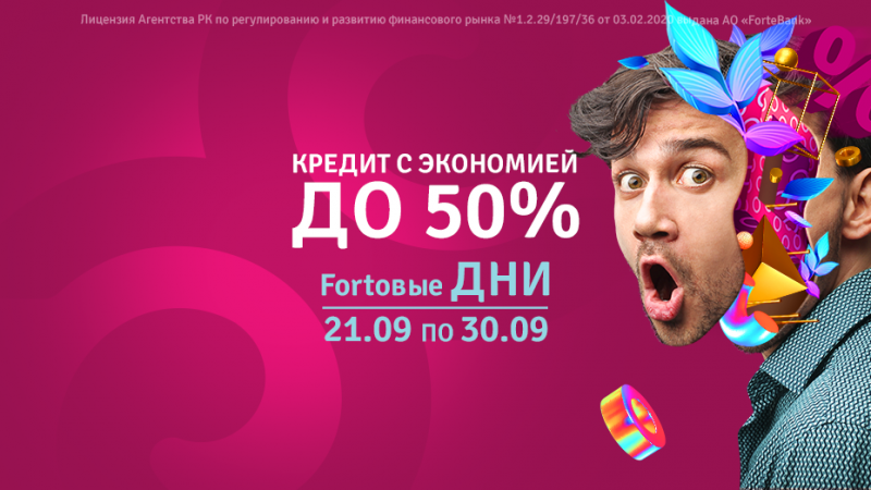 ForteBank продолжает оставаться лидером кредитного рынка Казахстана. Только за последний месяц ему удалось нарастить кредитный портфель на 1,4 процента. Стремясь сохранить лидерство и дать клиентам еще более привлекательные условия, ForteBank запускает уникальное предложение - только с 21 по 30 сентября можно взять потребительский кредит и сэкономить на комиссиях. По факту для клиентов это может быть выгодой до 50 процентов от стоимости кредита. Напомним, что ForteBank предлагает одну из самых низких ставок на рынке - потребительское кредитование от 7,3 процента.