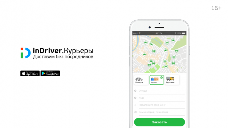 * Сервис inDriver не является курьерской службой, не оказывает услуги по перевозке, доставке, в том числе услуги по реализации товаров, являясь интернет-агрегатором, позволяющим пользователям взаимодействовать. Возрастное ограничение: +16.