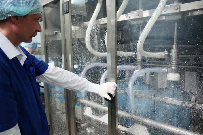 На заводе соблюдают все санитарно-эпидемиологические нормы для производства питьевых вод. Контакт человека с водой практически исключен - очистка воды, промывка тары и розлив осуществляются на автоматизированной линии.
