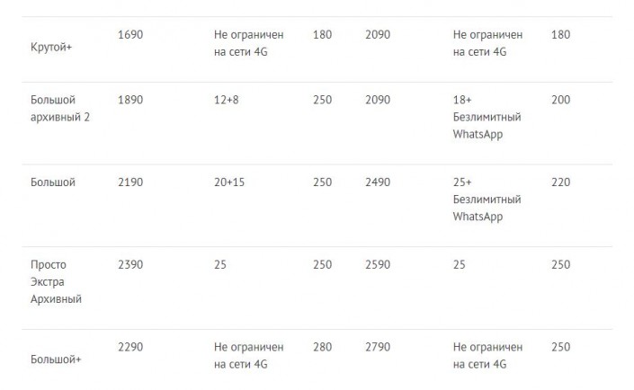 В таблице указано, какие тарифные планы Tele2 будут меняться: