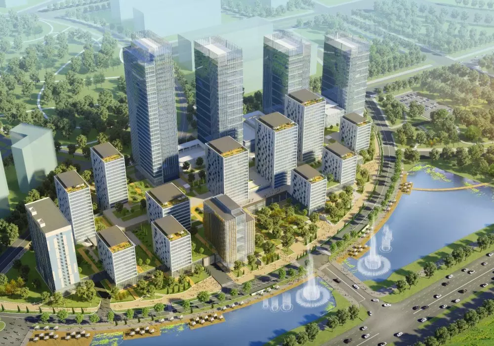 "Зеленый квартал" - это целый комплекс объектов, объединяющих в себе современный комфорт и экологическую чистоту городской среды. Проект основан на концепции создания компактного района, независимого от шумного города, где предусмотрена масштабная инфраструктура и большое количество открытых зеленых пространств. Оригинальная архитектурная мысль - расположить жилой массив вдоль уникального водоема и парковой зоны - еще больше подчеркивает слияние природы с насыщенным пейзажем городской жизни.