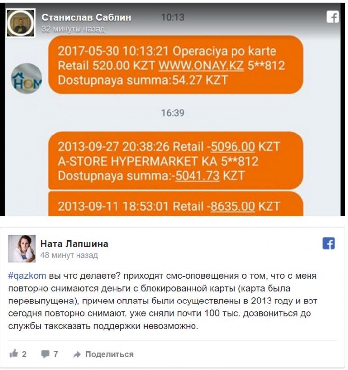 Клиенты казахстанских банков в Facebook сообщают, что с их карточек начали исчезать деньги, передает корреспондент Tengrinews.kz. В частности в соцсетях посты пишут клиенты Qazkom.