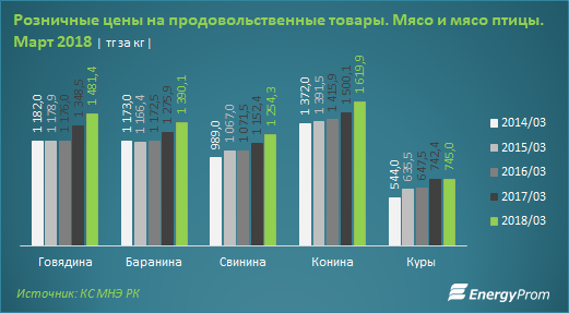Практически не изменились в цене только куры - рост лишь на 0,4 процента, до 745 тенге за килограмм.