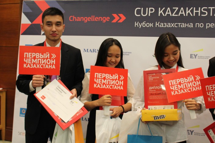 Конкурс в Казахстане проводится с 2013 года и считается одной из главных площадок для встреч работодателей и молодых специалистов. Участие в Changellenge Cup приняли почти 1000 человек, в финал прошли 80 студентов. Перед ними ставили задачу - решить бизнес-кейс гарвардского формата в течение двух недель. Описание кейса занимало 50 страниц. Участники презентовали свои решения менеджерам крупных компаний. Жюри оценивало аналитические навыки студентов, их умение работать в команде и проводить презентации. Успешнее всех с задачей в русскоязычной секции справилась команда Purple, состоящая из магистрантов и бакалавров Международного университета информационных технологий. Также их пригласили на тренинг и обед с управляющим директором Qazkom Нурланом Жагипаровым.