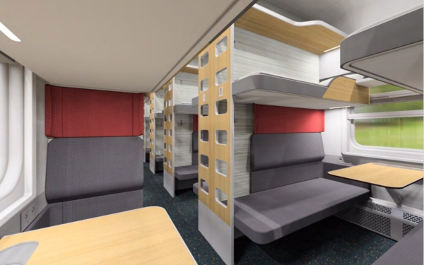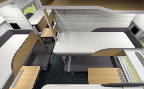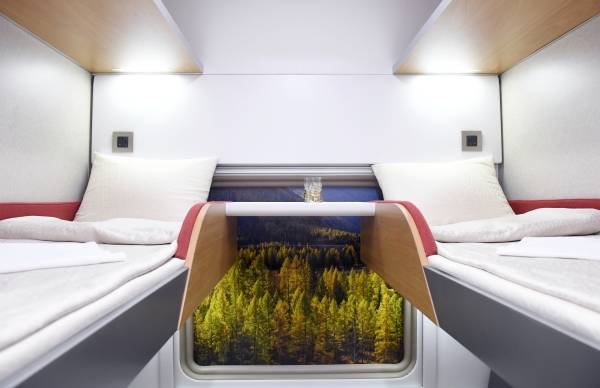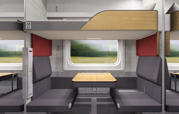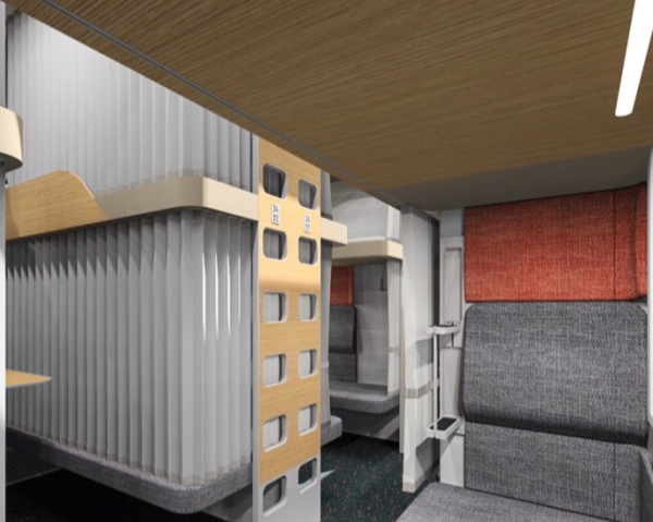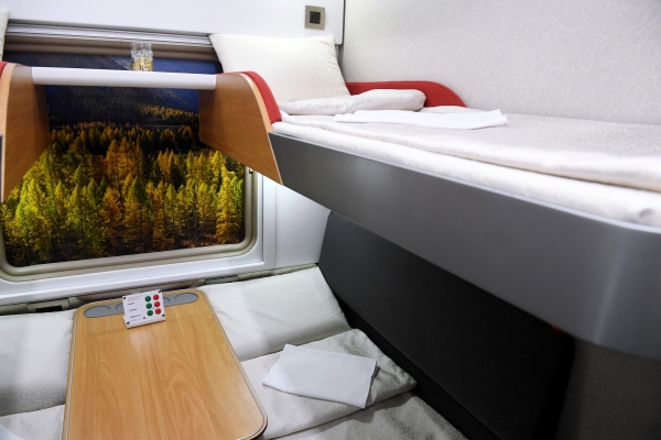 Полки в новом дизайне выглядят как диваны с подголовниками. Каждое место оборудовано розеткой и USB-разъемом, а также плотными шторами, похожими на вертикальные жалюзи, которые в любой момент можно закрыть и полностью отгородиться от попутчиков.
