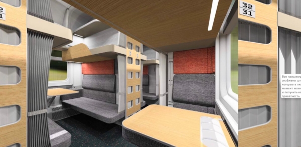 Российская компания РЖД представила концепт новых плацкартных вагонов, в которых предусмотрены зоны персонального комфорта для пассажиров. Изображения нового дизайна опубликовало РИА Новости.
