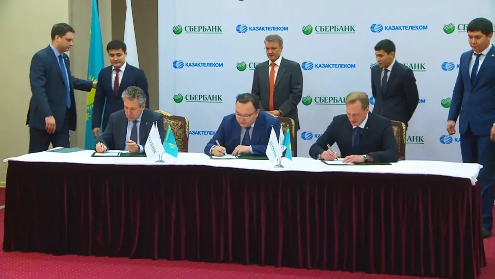 Документ подписали заместитель председателя правления по международному бизнесу ОАО "Сбербанк России" Сергей Горьков, председатель правления ДБ АО "Сбербанк" Александр Камалов и председатель правления АО "Казахтелеком" Куанышбек Есекеев. Меморандум подразумевает развитие сотрудничества между компаниями на долгосрочной и взаимовыгодной основе. На торжественном мероприятии присутствовал президент и председатель правления Сбербанка Герман Греф.