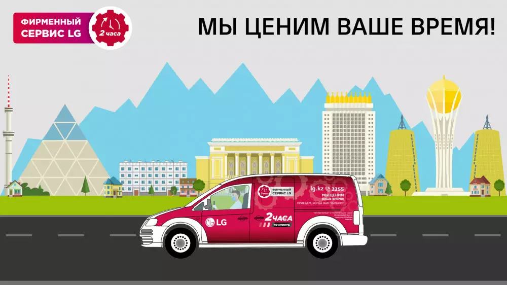 "Ждите в течение дня" - стандартный ответ многих выездных сервисных служб. В этот день приходится откладывать все свои запланированные дела и ожидать приезда мастера. Фирменный сервис LG предлагает жителям городов Нур-Султан, Алматы и Шымкент удобный для них двухчасовой интервал, в течение которого на указанный адрес приезжает мастер с необходимыми запчастями.