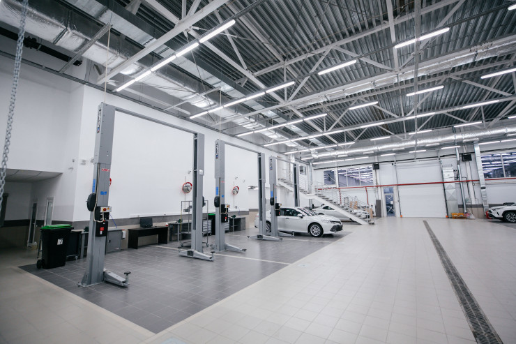 - 760 квадратных метров отведено под зону сервиса с 10 постами, где клиентам будет предоставлен быстрый и квалифицированный сервис согласно мировым стандартам Toyota.