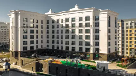Столица продолжает поиск идеальной "одежды" для дома. Одно из лучших решений - примененный полимербетон. Он легче фибробетона в четыре раза, при этом негорючий и обладает отличными качествами для нашего резко континентального климата. Фасад смонтирован на металлической подконструкции, которая не сжимается и не расширяется под воздействием температуры.