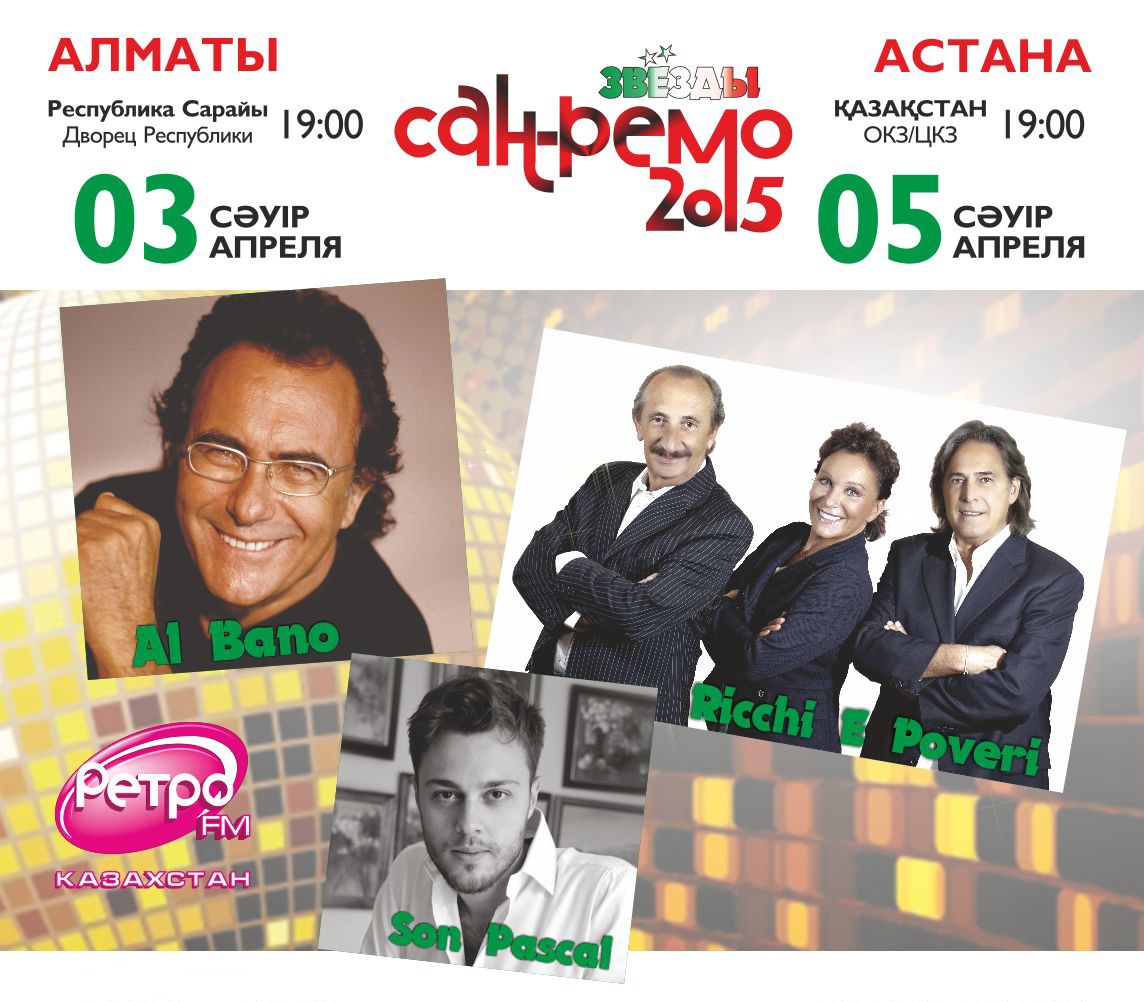 Ведущим концерта будет молодой итальянский певец Сон Паскаль. Легендарные Аль Бано и Ricchi E Poveri исполнят как всем известные хиты, так и песни из нового репертуара. "Сюрпризом для гостей станет то, что они исполнят на нашем казахском языке несколько песен", - добавил организатор концерта.