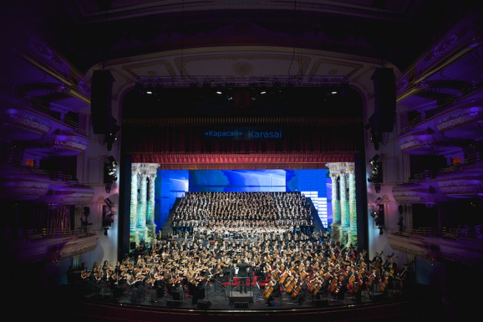 Главный дирижер "Астана Опера" - всемирно известный маэстро Алан Бурибаев осуществил грандиозный проект. Выдающийся дирижер сумел объединить более тысячи музыкантов - сводные симфонические оркестры и хоры из всех регионов Казахстана, а также из Италии, Австрии, Германии, Голландии, Греции, Хорватии, России, Беларуси, Таджикистана и Узбекистана. Филигранная работа маэстро демонстрировала единое ритмическое звучание и чистоту исполнения.