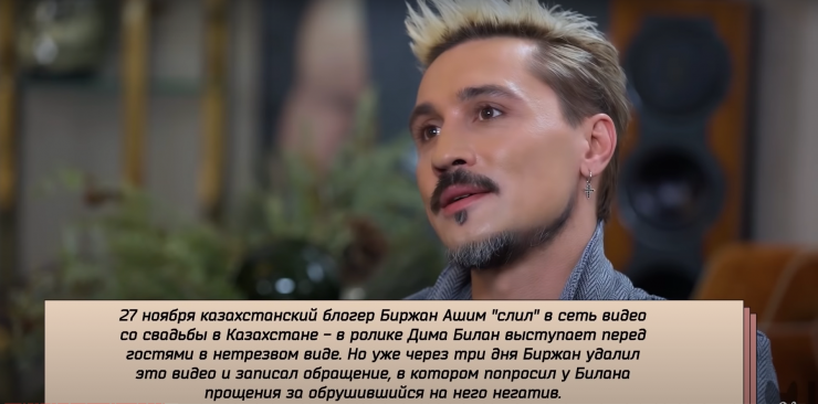 Российский певец Дима Билан в интервью для YouTube-канала "Осторожно, Собчак" прокомментировал опубликованное в Сети казахстанским блогером скандальное видео на свадьбе в Алматы, на котором артист выступает перед гостями нетрезвым, передает Tengrinews.kz.