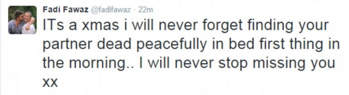 "Это Рождество я никогда не забуду. Я никогда не перестану скучать по тебе", - написал Фаваз на своей страничке в Twitter.