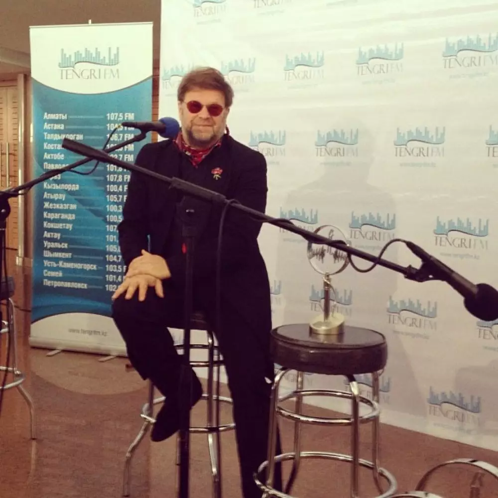 Легендарный музыкант, лидер российской группы "Аквариум" Борис Гребенщиков прибыл в Алматы для вручения первой премии в области рок-музыки в Казахстане, передает корреспондент Tengrinews.kz. Гребенщиков вышел к журналистам в черном костюме с красным шарфом. Он сказал, что красный цвет для него - символ "периода новой жизни".