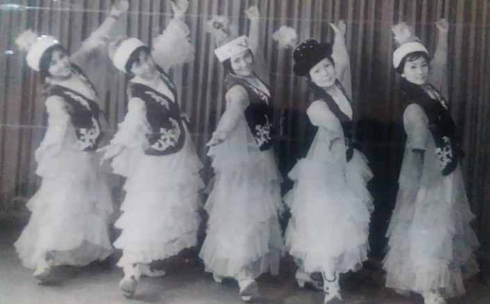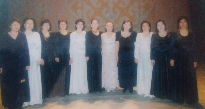 Миуа Төлегенова "Сыр сұлуы" ән-би ансамблінің құрамында (Ортасында)