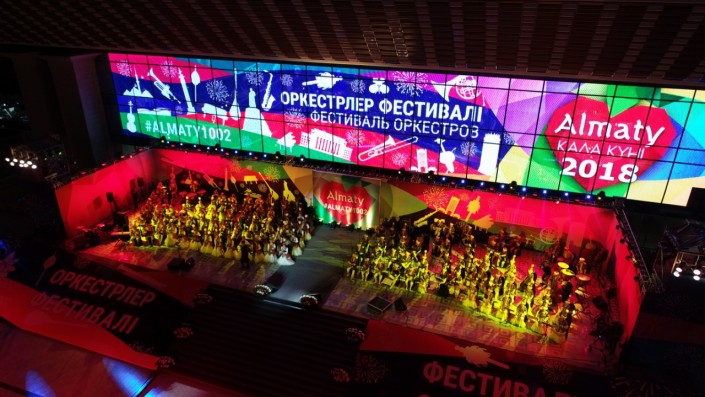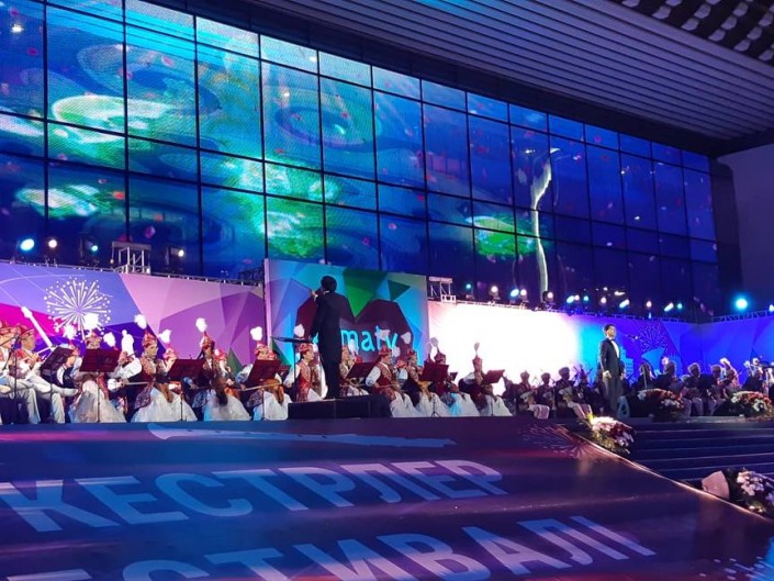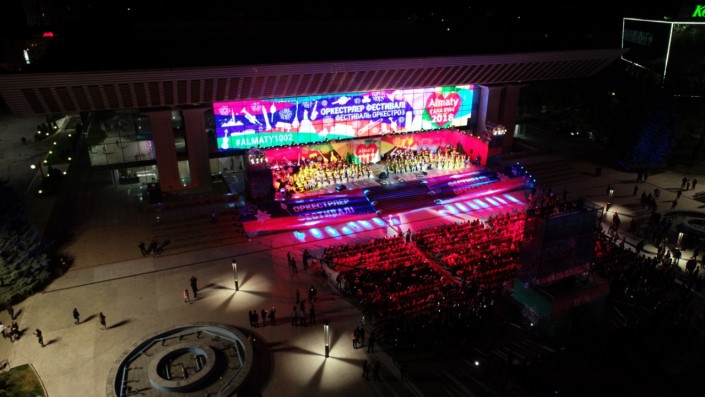 В течение двух дней на площади Абая перед Дворцом республики звучит оркестровая музыка в исполнении прославленных творческих коллективов при участии солистов-инструменталистов и мастеров вокального искусства.