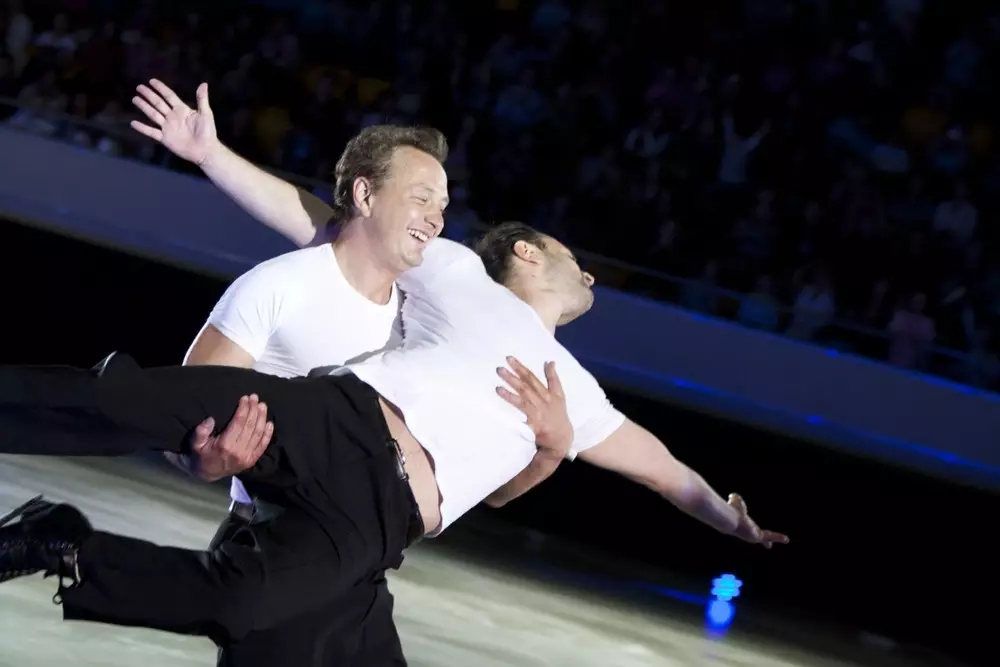 С шуточной ссоры началось выступление известного телеведущего и актера Марата Башарова и серебряного призера Олимпийских игр Ильи Авербуха на шоу "Лед и пламень" в Алматы, передает корреспондент Tengrinews.kz. Победитель проекта "Звезды на льду" Башаров и его соведущий Авербух не смогли согласовать, кто объявит следующий номер, "повздорили" и решили выяснить, кто из них лучший ведущий. "Ты не смеешь оскорблять меня здесь, в мусульманской стране, и я вызываю тебя на дуэль", - заявил Башаров. Пятиминутное выступление на льду стало одним из самых запоминающихся номеров всего вечера. В южную столицу Казахстана звезды шоу "Лед и пламень" съехались на празднование Дня защиты детей. Перед выступлением они посетили реабилитационный центр для детей и подростков с ограниченными возможностями "Мейрим". Для детей трех местных центров реабилитации шоу "Лед и пламень" устроили пять олимпийских чемпионов по фигурному катанию, 11 чемпионов мира и Европы, а также известные певцы и актеры. Маргарита Дробязко и Повилас Ванагас откатали свою версию эпопеи "Пираты Карибского моря", индийский танец исполнили Линда Нигматулина и Руслан Гончаров, трогательный номер подготовили "папина дочка" Елизавета Арзамасова и ее партнер Максим Ставицкий. Почти подвигом стал выход на лед олимпийского чемпиона Алексея Ягудина: накануне выступления он сломал палец на ноге. "Ну как я мог не выступить перед детьми! Я сам отец и очень хочу быть примером для них", - заявил фигурист после своего выступления. Олимпийские чемпионы Турина Татьяна Тотьмянина и Максим Маринин откатали свой номер под песню "Любовь настала" в исполнении Розы Рымбаевой. Новый элемент "тодес вчетвером" выполнили пары Мария Петрова и Алексей Тихонов в тандеме с Еленой Леоновой и Андреем Хвалько. Организаторы пообещали, что участники шоу приедут в Казахстан еще раз и уже с другими программами.