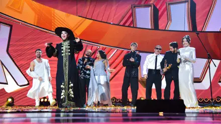 Представитель Грузии Автандил Абесламидзе предстал на сцене в белоснежном одеянии.
