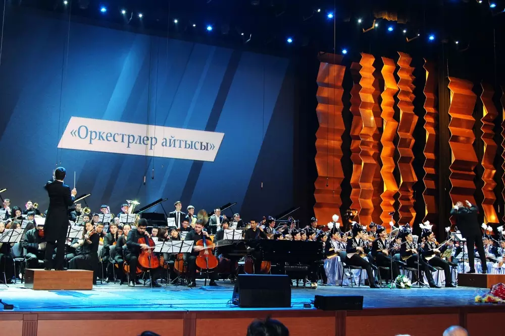 Оркестр национальных инструментов и симфонический оркестр при Казахской национальной консерватории имени Курмангазы провели айтыс между собой во время гала-концерта в Алматы, сообщает корреспондент Tengrinews.kz.