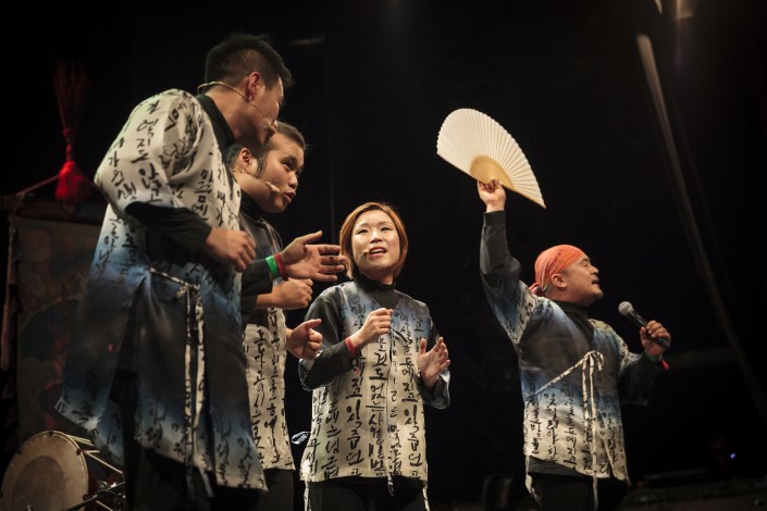 Зрителям представится уникальная возможность познакомиться с экзотическими корейскими инструментами - барабаном в форме песочных часов чангу, двусторонним барабаном бук, большим металлическим гонгом чин и маленьким металлическим гонгом. Исполняемая на этих ударных инструментах традиционная крестьянская музыка в репертуаре музыкального коллектива сопровождается комбинацией шаманских ритмов и популярных песен.