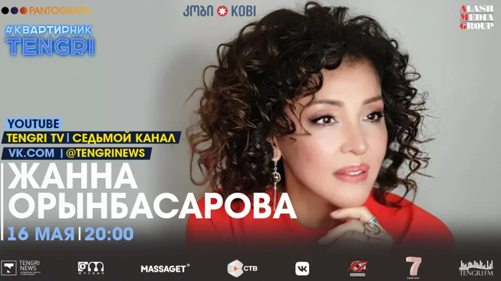 Медиахолдинг Alash Media Group совместно с продюсерским центром Pantograph продолжает серию онлайн-концертов #КвартирникTengri. Казахстанская певица Жанна Орынбасарова выступит в эфире YouTube-канала Tengri TV сегодня, 16 мая, в 20.00.