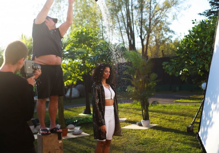 "Основной упор был сделан на атмосферу лета, тепла и радости. И в день съемок вышло солнышко, температура поднялась до 20 градусов. Ночные съемки под водой были, конечно, тяжелыми из-за низкой температуры на улице. Актерам пришлось надевать гидрокостюмы. Но, к счастью, все было без происшествий", - отметил Медет.