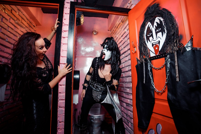 Чего только стоят наряды официантов и меню в стиле стимпанк! А стены, украшенные под мотомастерскую? А барабаны от стиральных машинок в качестве элемента дизайна? А Мэрилин Мэнсон, косящий на тебя глазом в туалетной кабинке? Да отсюда без пары десятков селфи точно не уйдешь!