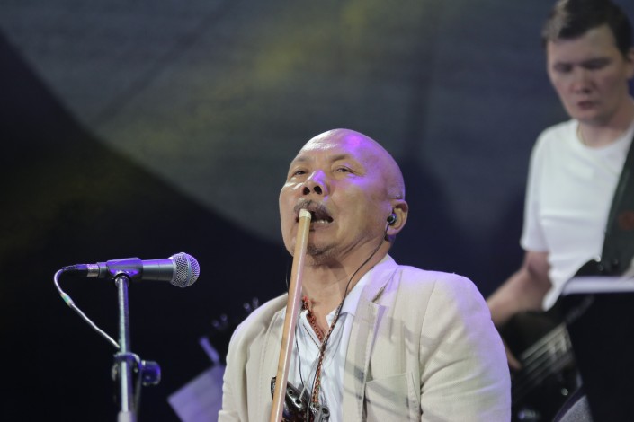 21.45 На площадке появились казахстанский мэтр горлового пения Едиль Хусаинов и уникальная этно-фьюжн-группа Satzhan Project. Музыканты начали свое выступление с завораживающей песни "Күз биі".