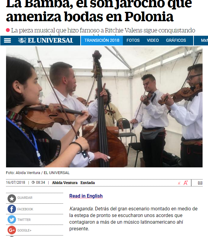 Отдельное внимание в материале мексиканского издания уделили выступлению польского коллектива Hoverna. Квартет выступил на фестивале с песней "Ла Бамба", в традиционном мексиканском стиле "сон харочо": "Молодые музыканты доказали, что музыка продолжает покорять сердца во всех уголках мира, вне зависимости от географических и языковых границ", - резюмирует автор.
