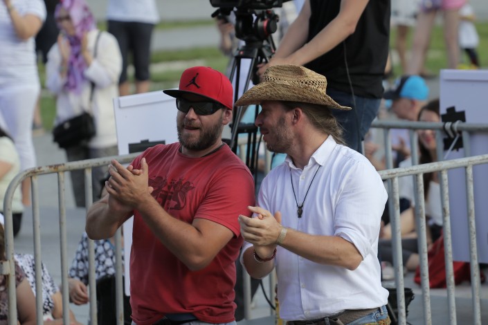 18.40 Участники группы из Венгрии Kerekes Band, накануне своей музыкой покорившие всех, сегодня присоединились к зрителям фестиваля и наслаждаются выступлением своих коллег из Литвы.