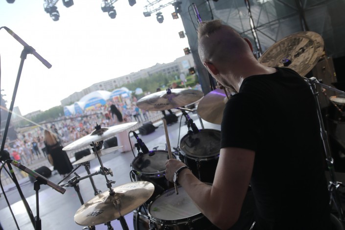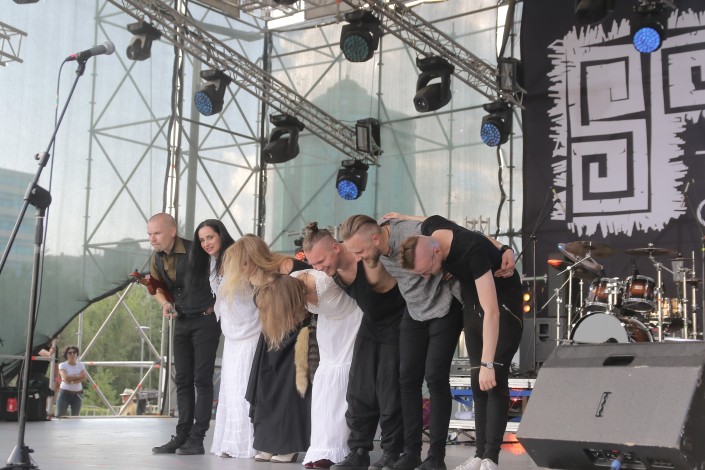 19.00 Потрясающее треголосие и энергичные барабанные партии группы из Литвы начали по настоящему раскачивать атмосферу. Гости фестиваля стали сначала пританцовывать, а потом и танцевать в полную силу.