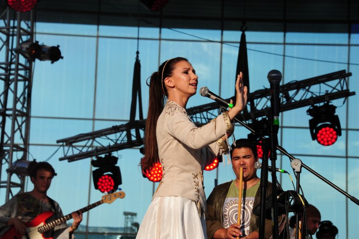 Во второй день крупнейшего в Центральной Азии международного фестиваля современной этнической музыки The Spirit of Tengri русские народные песни соединились с башкирским роком, передает корреспондент Tengrinews.kz. Композиции звучат в исполнении певицы Екатерины Ямщиковой из Башкортостана. Фестиваль проходит в формате open-air на площади имени Абая перед Дворцом Республики.