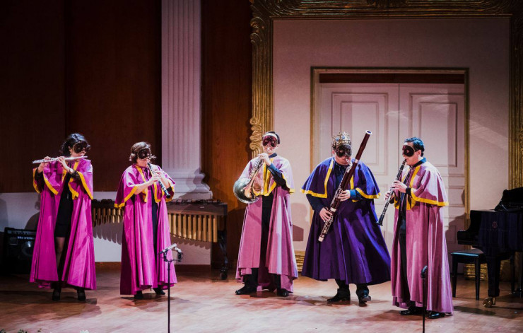 Порадовал маленьких слушателей и квинтет духовых инструмент "КВИКОНТЕ", который исполнил знаменитый фрагмент из пьесы "Путешествие Пера Гюнта" на музыку Эдварда Грига - "Пещера горного короля" - царство троллей.