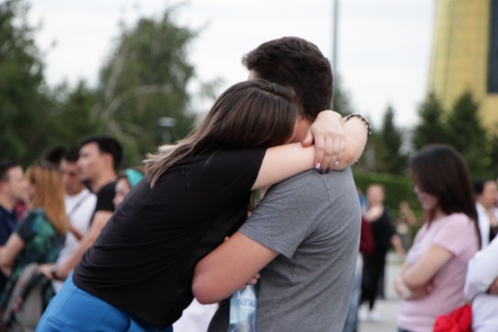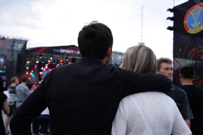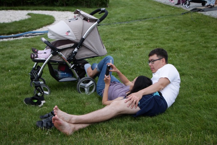 20.40 Среди зрителей много влюбленных пар. Молодые люди с удовольствием слушают артистов, валяются на траве, получают удовольствие от живой музыки на сцене The Spirit of Astana.