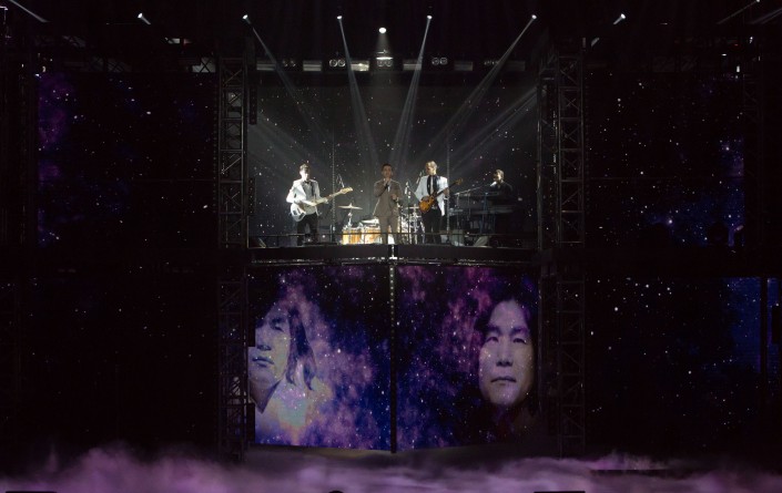 На сцене Центрального концертного зала "Казахстан" вместе с Али Окаповым выступили народные артисты РК, в числе которых именитые звезды: Роза Рымбаева, Нагима Ескалиева, лауреаты международных и республиканских конкурсов Нуржан Керменбаев, Сырымтай Енсепов, Мади Рымбаев и Диас Аблаев.