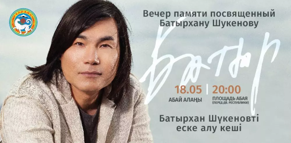 Вечер памяти Батырхана Шукенова пройдет на площади Абая перед Дворцом Республики в Алматы, сообщает корреспондент Tengrinews.kz со ссылкой на управление культуры города.