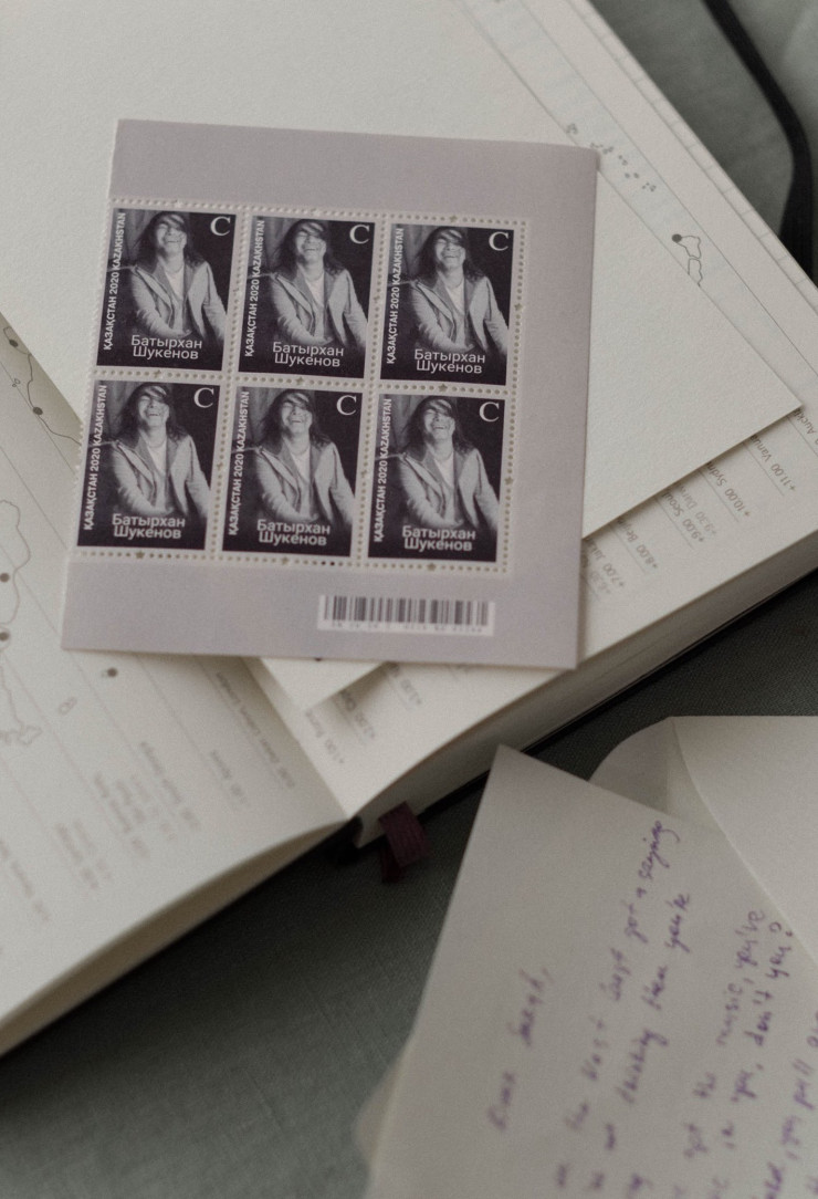 "Мы долго совещались и выбрали именно эту фотографию, потому что ту серию портретов очень любил сам Батыр. Это был хороший период в его жизни, он очень любил свою студию на улице Панфилова, творил там с друзьями. Для нас также было важно, чтобы в ней были жизнь, динамика и тепло, поскольку именно таким мы его помним. Очень хочется, чтобы и в памяти казахстанцев он оставался таким близким и живым", - рассказала директор общественного фонда имени Батырхана Шукенова Наргиз Шукенова.