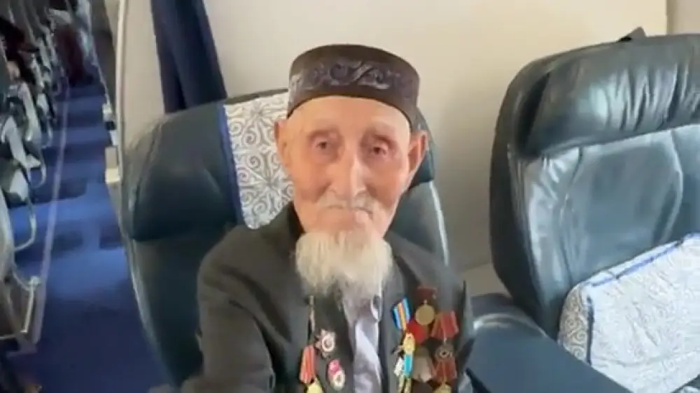"Рейс КС 854 Астана – Алматы за 12 мая 2024 года. Билет ему выписан бесплатно как ветерану ВОВ", – сообщили в пресс-службе компании.