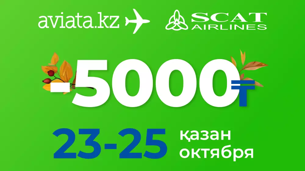 С 23 по 25 октября только на Aviata.kz можно приобрести авиабилеты SCAT со скидкой 5 000 тенге от заказа.