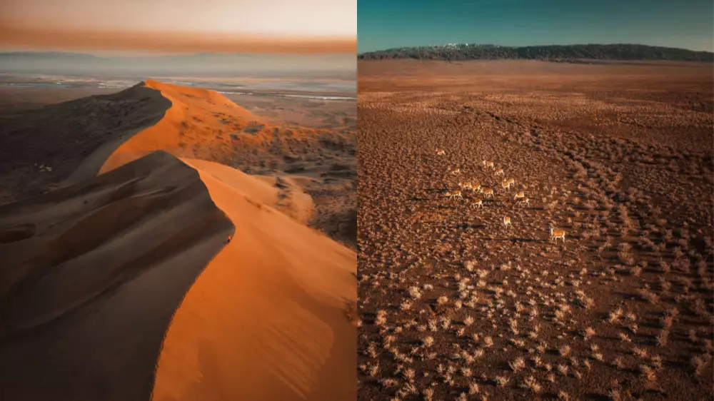 "Мне повезло. Вдалеке увидел маленькую стаю джейранов, решил заснять их на дрон, одна стая маленькая привела меня к еще большей, они слились и получились кадры с огромной стаей. Это огромная редкость, нечасто можно их застать", - делится Александр Кузнецов.
