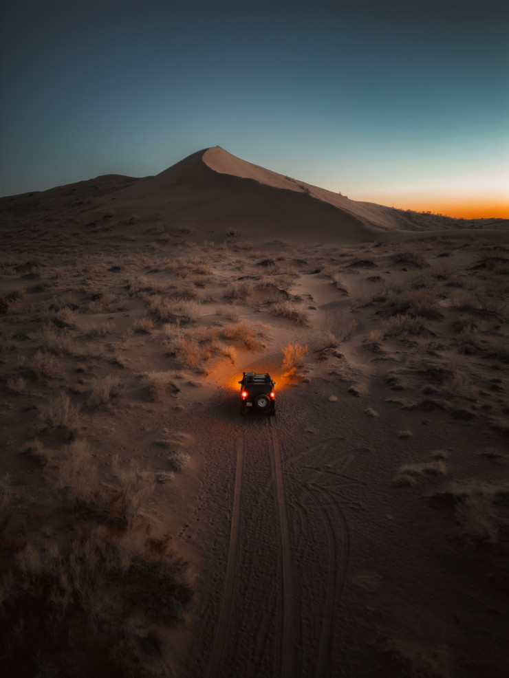 По словам автора, изначально поездка к песчаным барханам не планировалась. Фотограф со своими друзьями-единомышленниками собирался ехать в горы Актау.