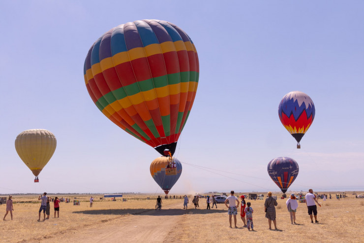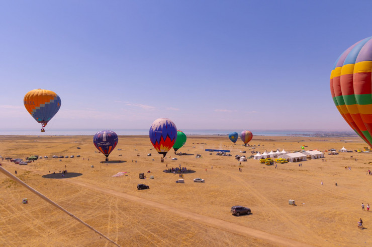 В программе фестиваля было заявлено 30 аэростатов, которые прибыли вместе с пилотами из России, Монголии, Узбекистана, Кыргызстана и, конечно же, из казахстанских городов - Астаны, Шымкента, Алматы, Усть-Каменогорска, Костаная, Туркестана, Жезказгана. В часы штиля они поднимали гостей праздника, одаривая незабываемыми впечатлениями. А один из пилотов, приехавший из Шымкента, на втором рассвете встал раньше всех и поднимал на шарах людей просто так, просто потому, что каждый пилот знает риски такого непростого развлечения и в то же время полон духом романтики.