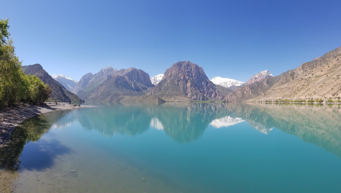 На следующий день выехал в Душанбе, где по дороге был впечатлен горным озером Искандеркуль, которое расположено на северных склонах Гиссарского хребта в Фанских горах. Добраться до воды можно только по проселочной дороге. Ехал на мотоцикле достаточно долго. Когда поднимался на склон, впервые упал с мотоцикла. Причем заезжал на небольшой скорости. Думаю, все из-за отсутствия практики заезда на крутой склон.