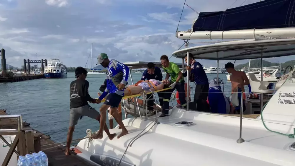 Инцидент случился 17 мая во второй половине дня. Катер с туристами на подходе к берегу, в 100 метрах от пирса бухты Чалонг, на значительной скорости врезался в бетонную конструкцию.
