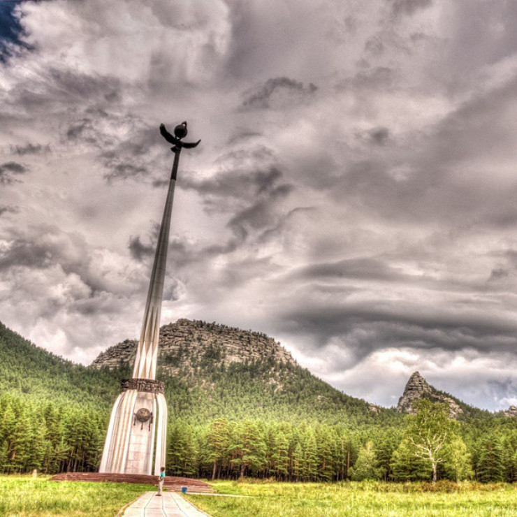 Это место жители Бурабая считают священным: здесь ранее была ставка великого хана Абылая. В центре поляны была установлена стела в виде стрелы, которая устремилась вверх. Чуть выше основания находится темное кольцо, оно стало символом единства трех жузов Казахского ханства с изображением Абылай-хана и его советников, на стеле также можно увидеть знамена трех жузов. Неподалеку расположен еще один интересный экспонат - естественный гранитный трон самого Абылай-хана.
