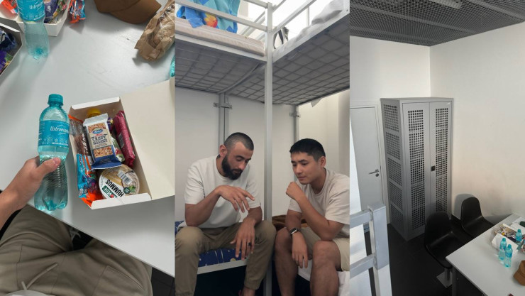 "Забрали все вещи, кроме телефона, обыскали, в туалет пускали только с охраной. Wi-Fi не было, питание состояло из двух спортивных батончиков, хумуса, что-то вроде колбасы в пакетике, я не разобрался, пюре вроде детского питания и бутылки воды.